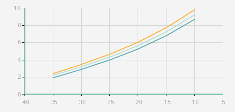 | 蒸發(fā)溫度 | 制冷量+/-5% | 能耗+/-5% | 現(xiàn)在能效+/-5% | 氣體流速+/-5% | 能效+/-7% | ||||