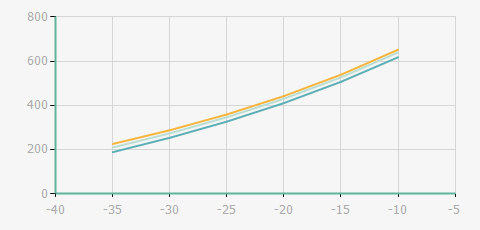 | 蒸發(fā)溫度 | 制冷量+/-5% | 能耗+/-5% | 現(xiàn)在能效+/-5% | 氣體流速+/-5% | 能效+/-7% | ||||