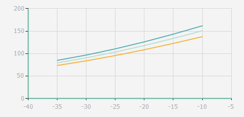 | 蒸發(fā)溫度 | 制冷量+/-5% | 能耗+/-5% | 現(xiàn)在能效+/-5% | 氣體流速+/-5% | 能效+/-7% | ||||