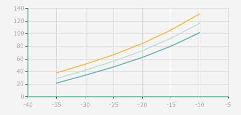 | 蒸發(fā)溫度 | 制冷量+/-5% | 能耗+/-5% | 現(xiàn)在能效+/-5% | 氣體流速+/-5% | 能效+/-7% | ||||