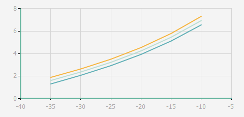 | 蒸發(fā)溫度 | 制冷量+/-5% | 能耗+/-5% | 現(xiàn)在能效+/-5% | 氣體流速+/-5% | 能效+/-7% | ||||