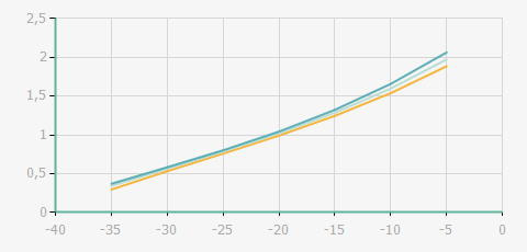 | 蒸發(fā)溫度 | 制冷量+/-5% | 能耗+/-5% | 現(xiàn)在能效+/-5% | 氣體流速+/-5% | 能效+/-7% | ||||