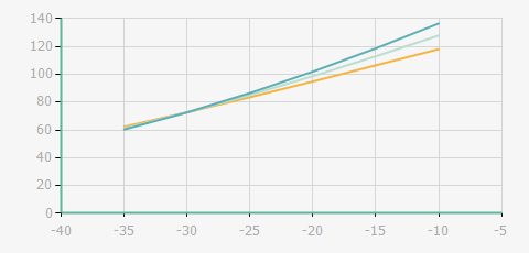| 蒸發(fā)溫度 | 制冷量+/-5% | 能耗+/-5% | 現(xiàn)在能效+/-5% | 氣體流速+/-5% | 能效+/-7% | ||||