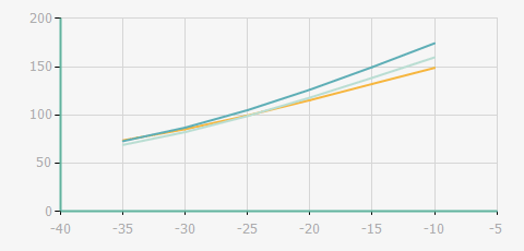 | 蒸發(fā)溫度 | 制冷量+/-5% | 能耗+/-5% | 現在能效+/-5% | 氣體流速+/-5% | 能效+/-7% | ||||
