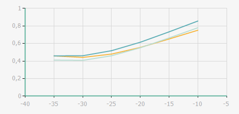 | 蒸發(fā)溫度 | 制冷量+/-5% | 能耗+/-5% | 現(xiàn)在能效+/-5% | 氣體流速+/-5% | 能效+/-7% | ||||