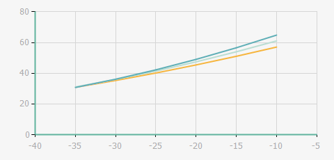 | 蒸發(fā)溫度 | 制冷量+/-5% | 能耗+/-5% | 現(xiàn)在能效+/-5% | 氣體流速+/-5% | 能效+/-7% | ||||